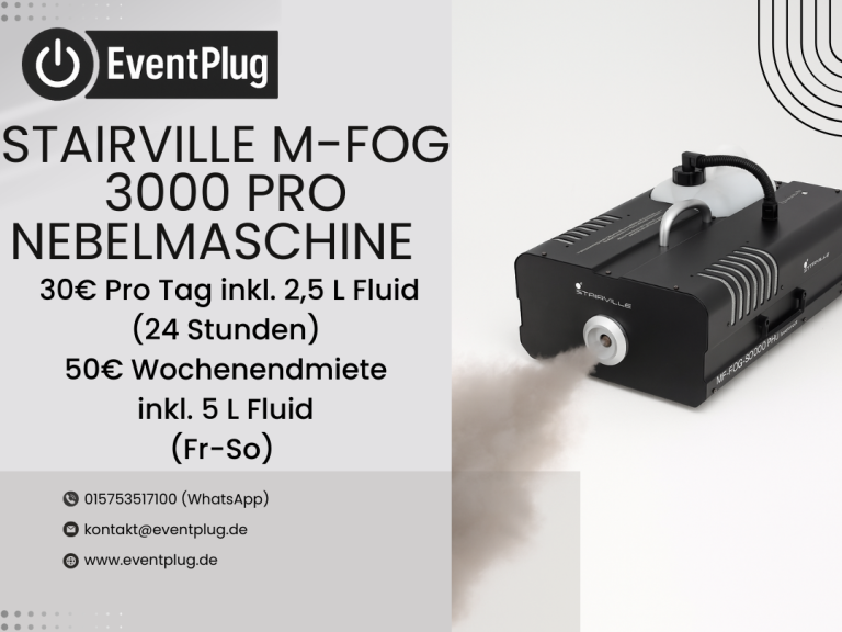 Die Stairville M-Fog 3000 Pro ist eine leistungsstarke Nebelmaschine für beeindruckende Show-Effekte. Mit ihren 3.000 Watt Leistung erzeugt sie in kürzester Zeit dichten, gleichmäßigen Nebel – ideal für Partys, Hochzeiten, Konzerte oder Firmenevents.