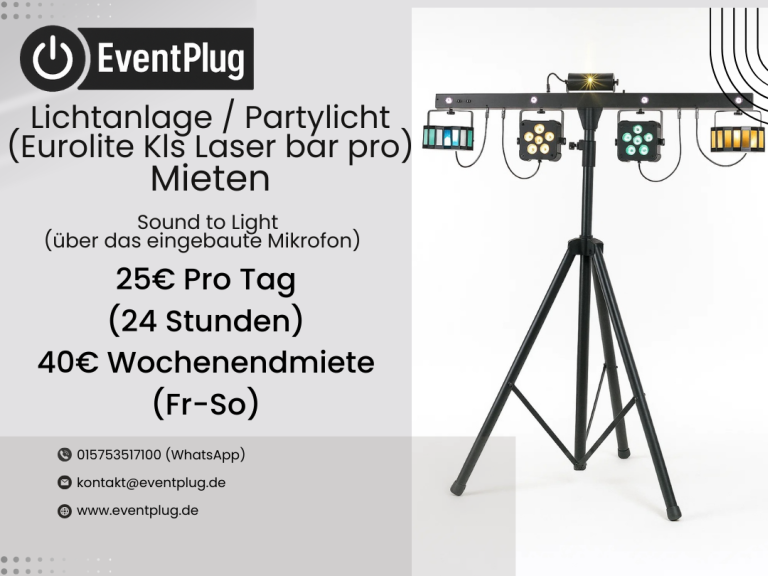 Miete die Eurolite KLS Laser Bar Pro und erlebe professionelle Lichteffekte, die Ihre Veranstaltung unvergesslich machen.
